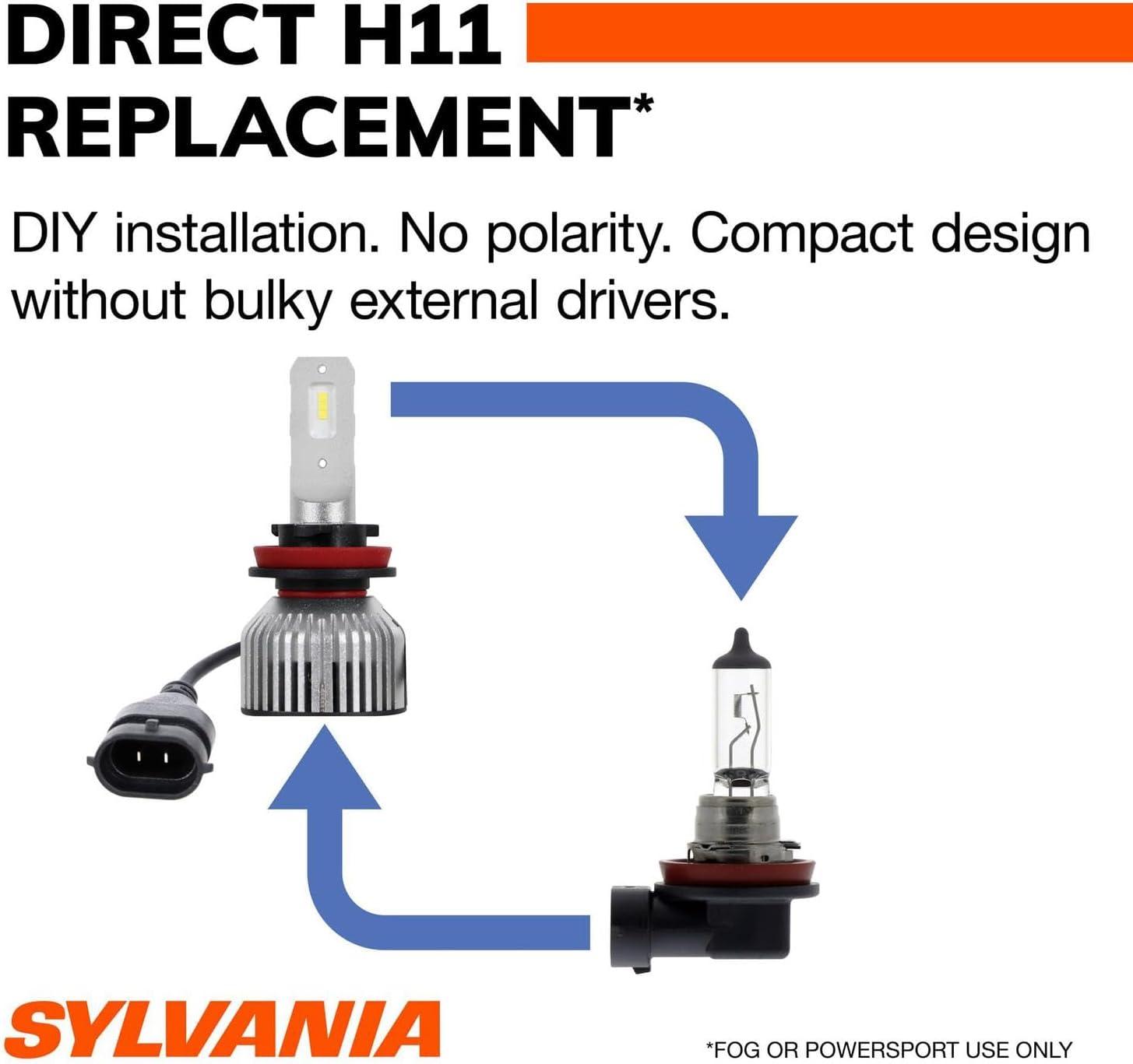 SYLVANIA H11 LED - Fog Lights For Cars and Trucks - Headlight Bulbs for Off Road Powersports - 6000k Cool White LED Light - Long-Lasting Bulbs - No Polarity - DIY Upgrade