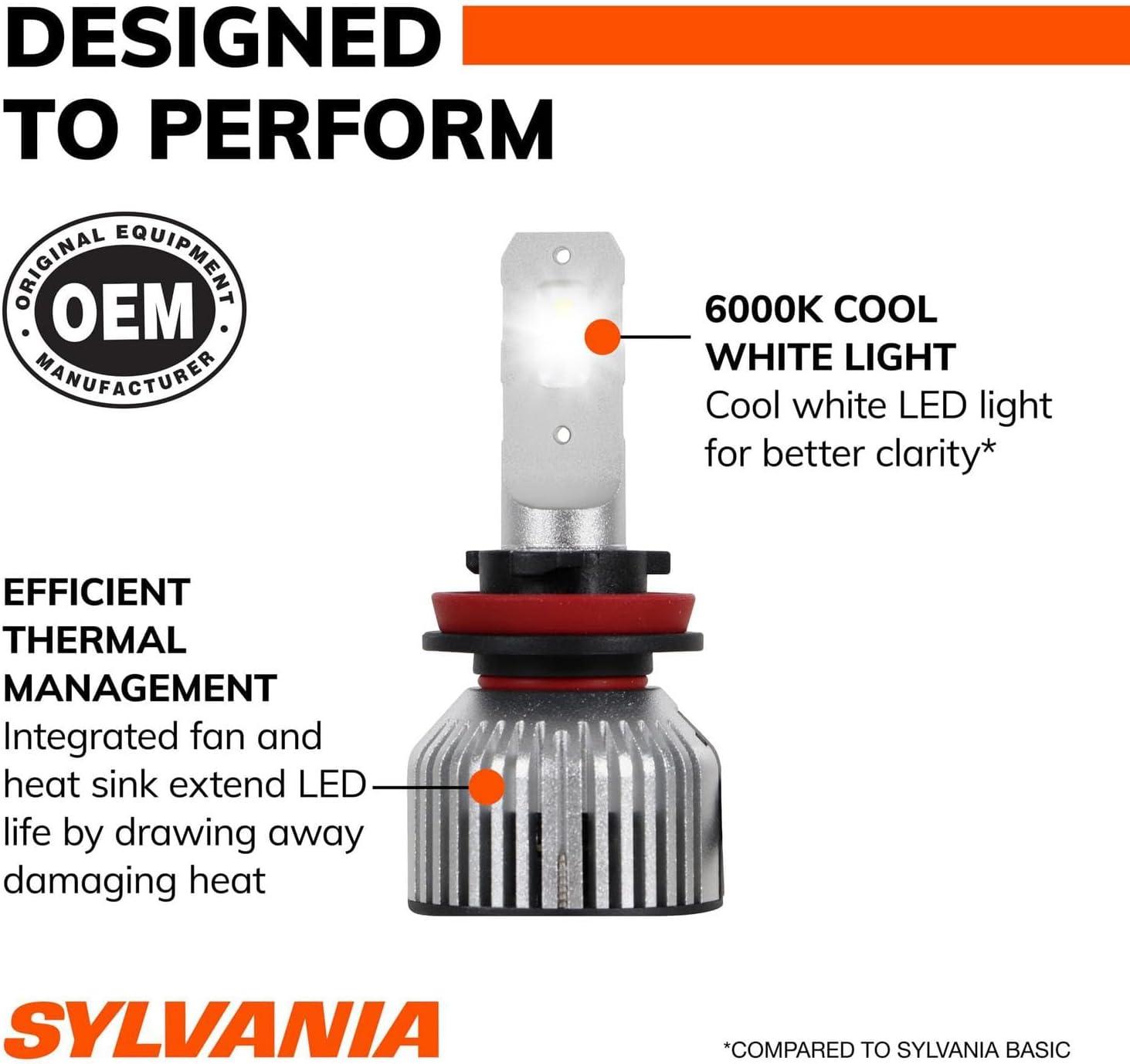 imageSYLVANIA H11 LED  Fog Lights For Cars and Trucks  Headlight Bulbs for Off Road Powersports  6000k Cool White LED Light  LongLasting Bulbs  No Polarity  DIY Upgrade