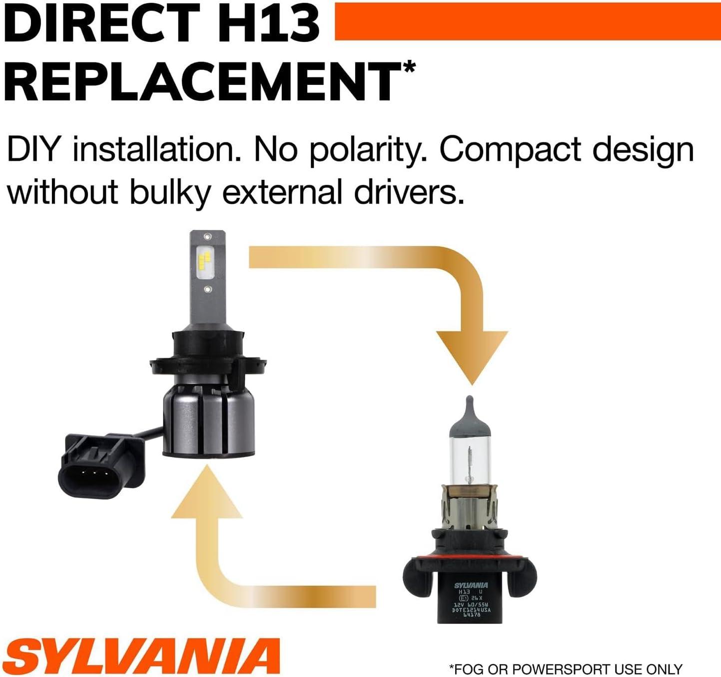 DIRECT H13 REPLACEMENT: A DIY LED upgrade for fog bulbs in cars and trucks or headlight bulbs for off-road powersports. No polarity, compact design.